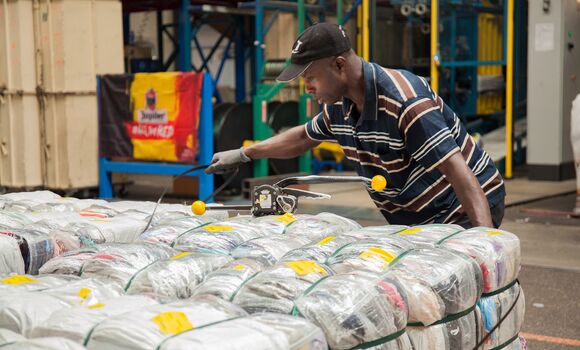 To ensure an efficient sorting process, various supporting activities take place around the sorting area. These include labeling sacks, moving bins to the sorting tables, and operating pressing machines to pack textiles according to customer requirements. No additional qualifications are needed for these tasks.
